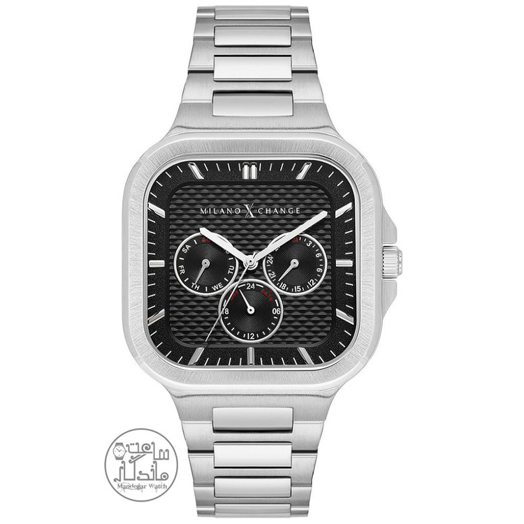 زمانی که ساعت مچی مردانه میلانو اکس چنج مدل MXG48001 را از نظر ظاهری بررسی می کنیم، رنگ بندی با کلاس مشکی و نقره ای اولین المانی است که باعث جلب توجه ما می شود. در کنار آن از دیگر ویژگی های ظاهری که تکمیل کننده ی استایل کلاسیک ساعت مچی است؛